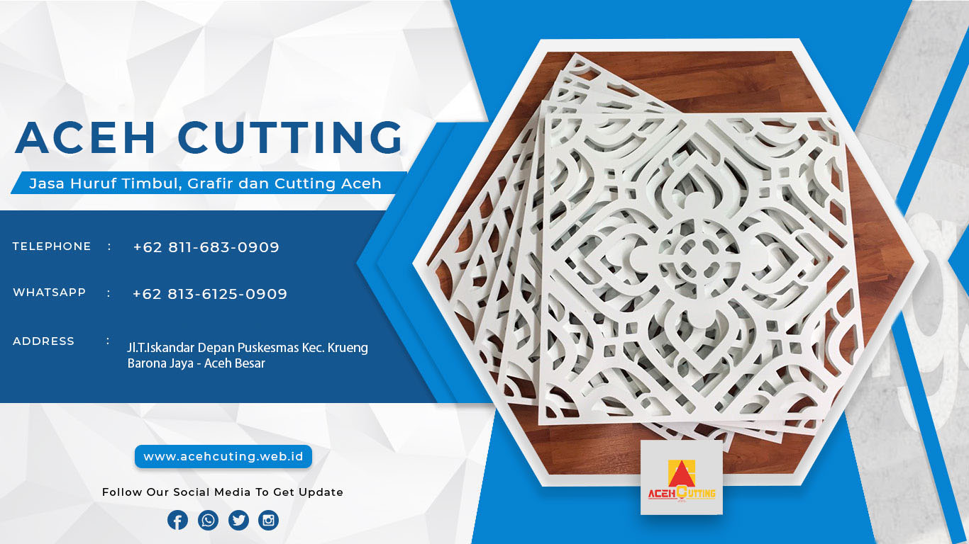 Aceh Cutting melayani jasa huruf timbul, cutting atau ornamen dengan berbagai jenis pilihan bahan seperti: